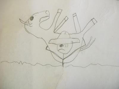 I know this bank doesn't LOOK steep, but it's about 12-15 ft. high (see the 4' fence posts at the top?). You can see how deep the snow was when she took off, drug her heels part way up and landed at the top. |