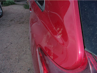 For reasons I do not fully understand, I decided to "roll" my face across the back window. The next morning, THIS showed up.